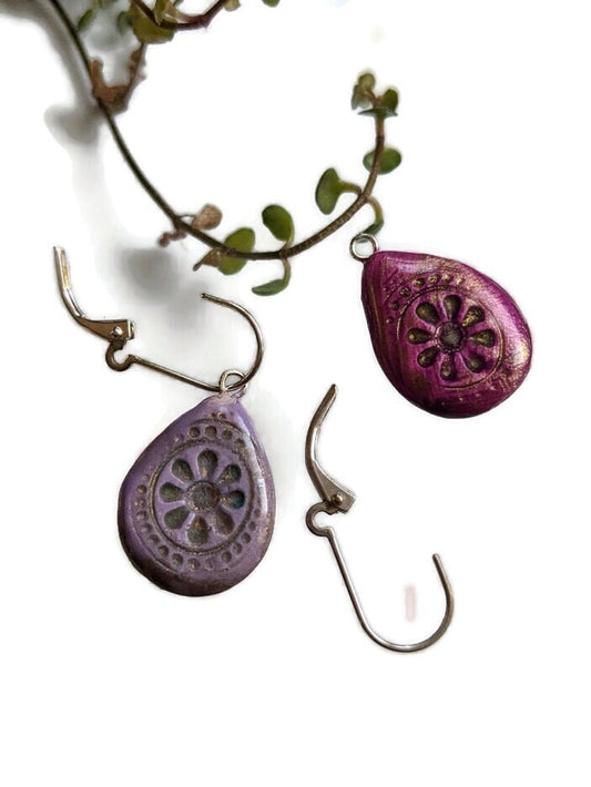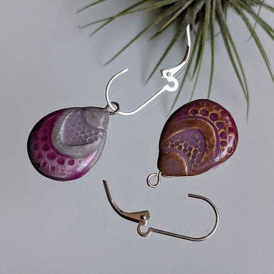Amethyst Mandala Teardrop Earrings REVERSIBLE Ceramic Dangles