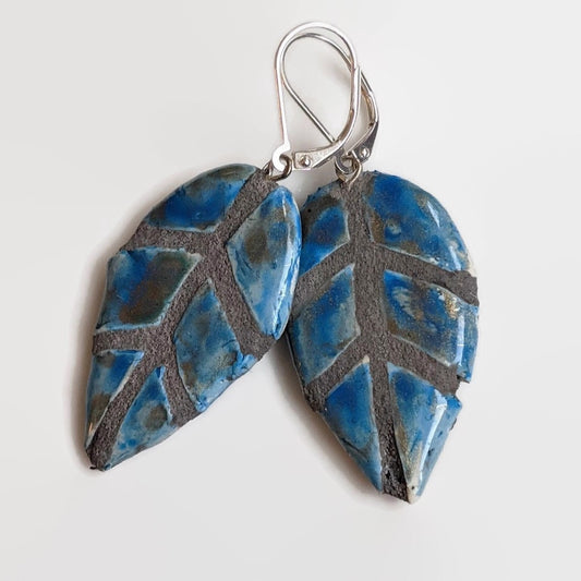 Aegean Blue Teardrop Earrings REVERSIBLE Clay Tile Jewelry